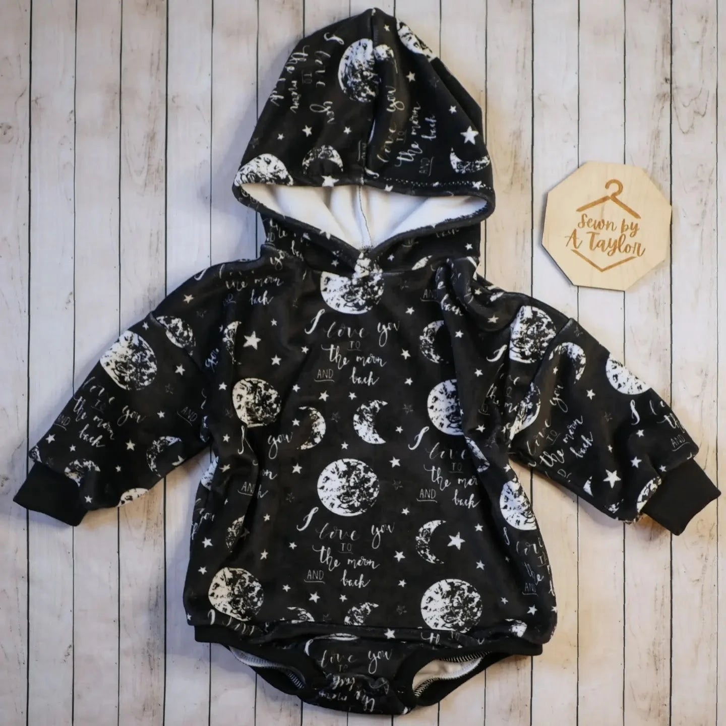 This is for an oversized sweater romper. There are snaps at the bottom for easy on and off. Can be made with a hood or without. Choose your size and color from the options below.